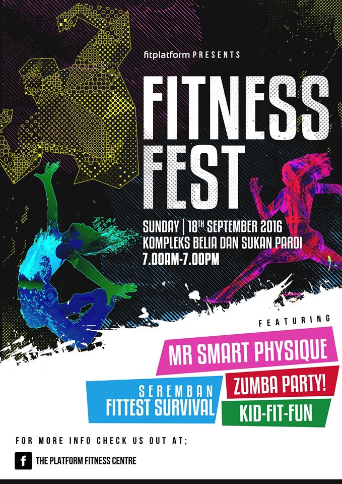 THE PLATFORM FITNESS CENTRE menganjurkan buat julung kalinya program FITNESS FEST pada 18 SEPTEMBER 2016. Ia bakal merangkumi 4 program utama seperti: